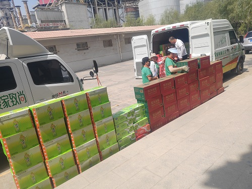 2025年7月15日中寧縣總工會夏季送清涼、防暑保安康慰問天祥公司職工,送來瓶裝水、茶和乳酸乳等飲品。
